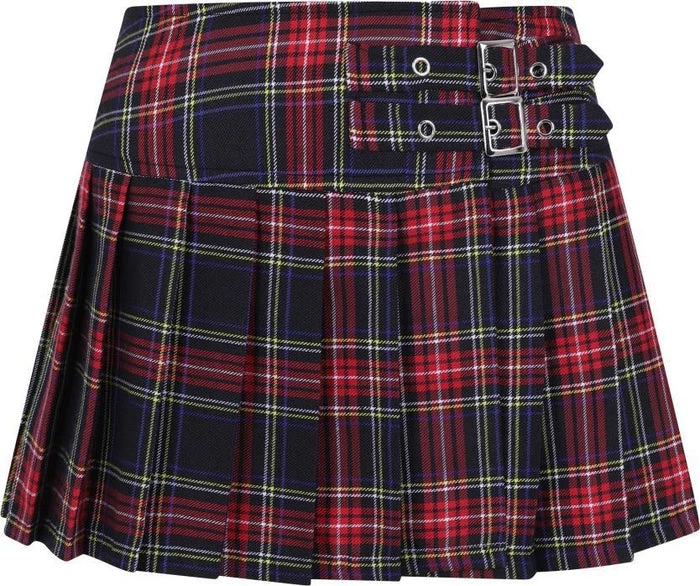 Ideal for anyoneΒ going for a nu-goth look.Β Buckle fastening at the waist and styled to look like a wrap over design, this mini has an iconic punkΒ aestheticΒ and is comfortable and stylish to wear. The fabric is stretchy and will hold its shape. Make Avril proud with knee-high socks or fishnets under this beauty.
