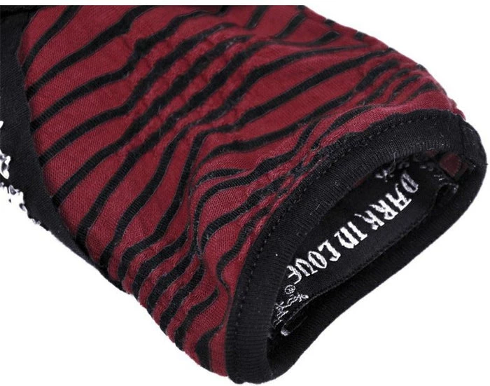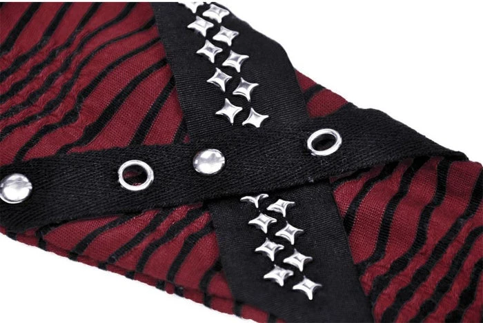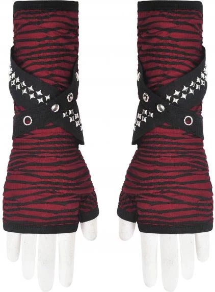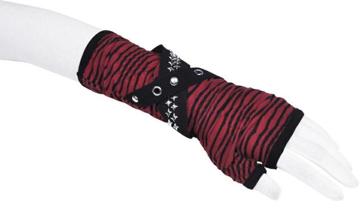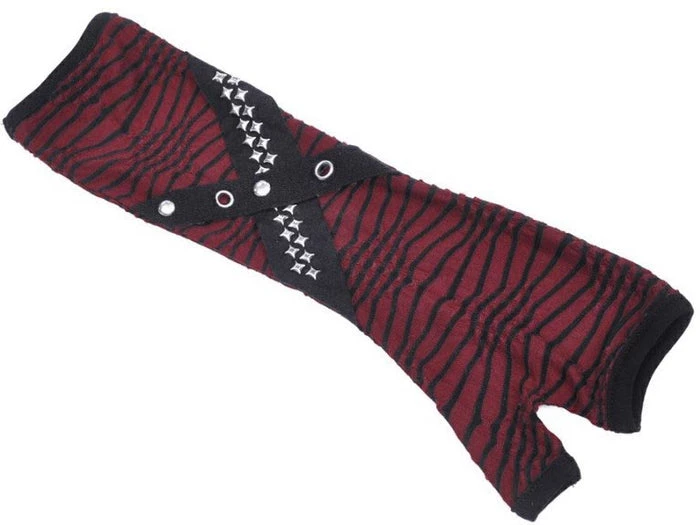 These fingerless gloves are the perfect accessory to finish offย your look! Featuring a stripe black and red pattern with star stud details – pair with platformย shoes and ripped jeansย for a rebellious outfit!