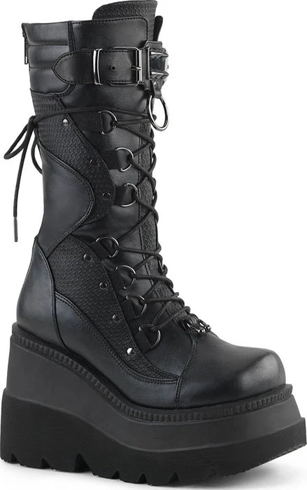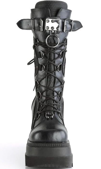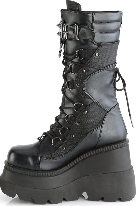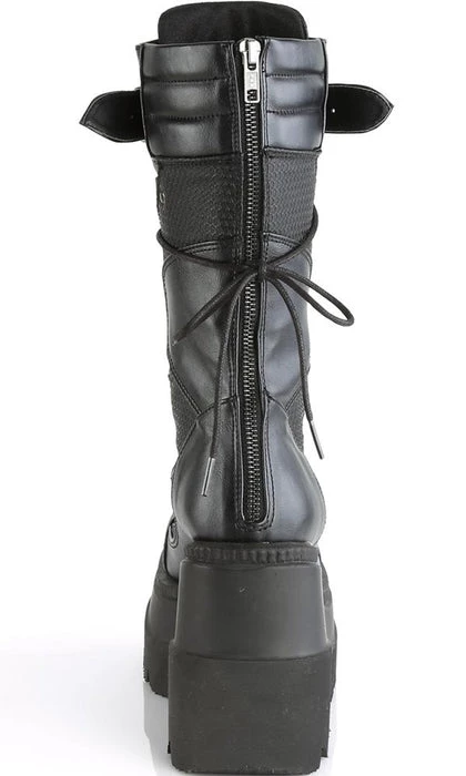 Matte Black Platform Lace-Up Mid-Calf Boots