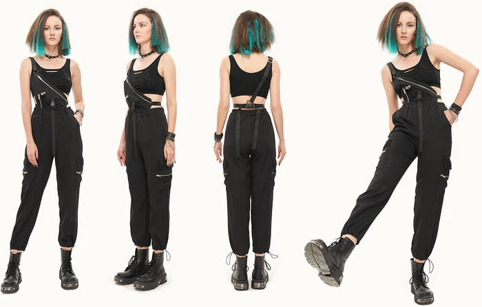 Unleash your inner quirkiness with these versatile punk goth overalls. Pair these with aΒ oversized top for a chill day around the house or a fishnet top and stompy boots for a night out!