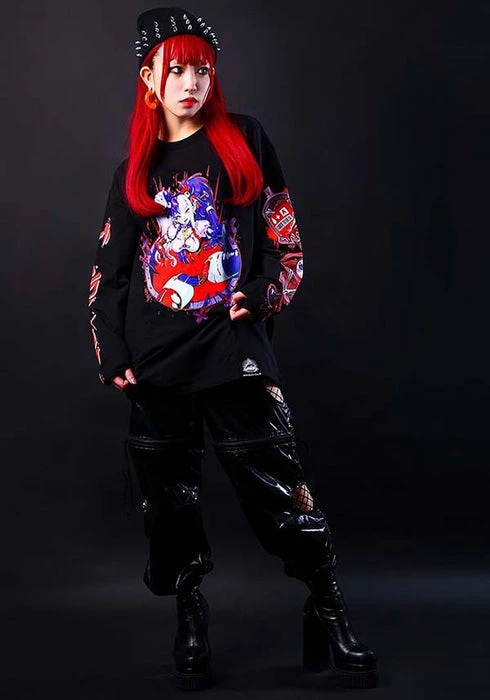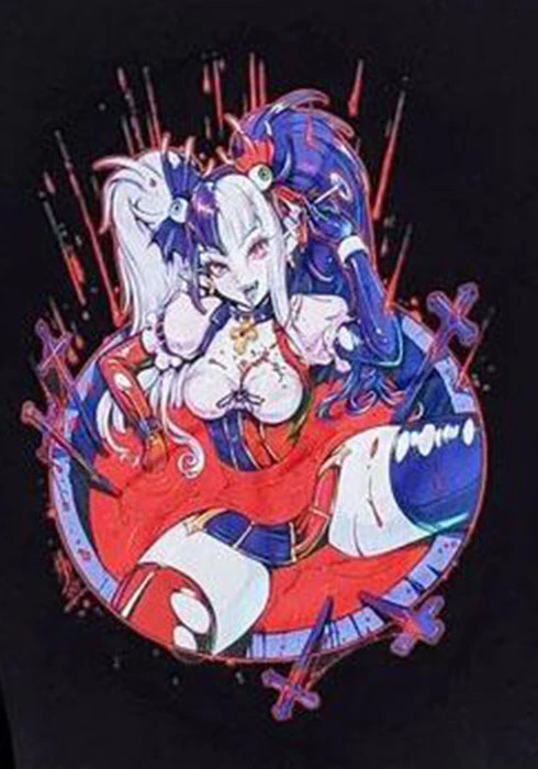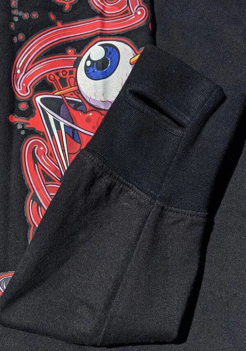 The T-Shirt features a full colour print on the front and sleeves, plus sewn-inย thumb holes in the cuffs. These even have Custom Draculita tags!