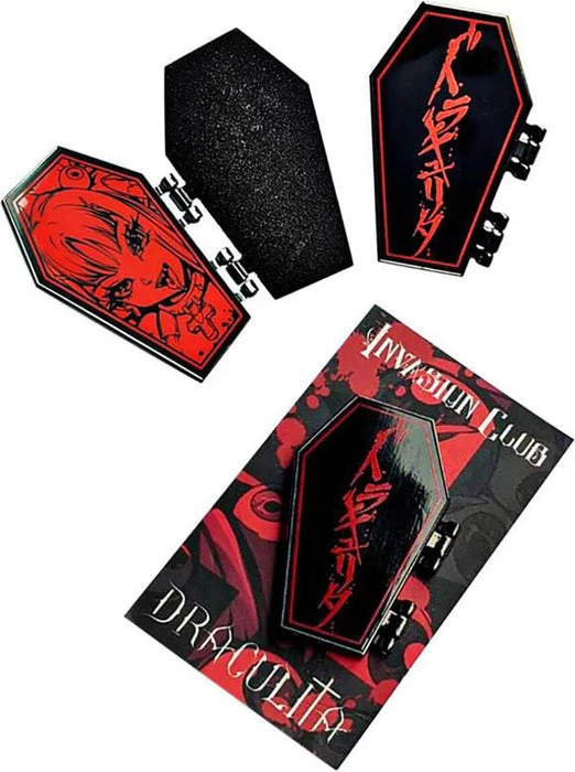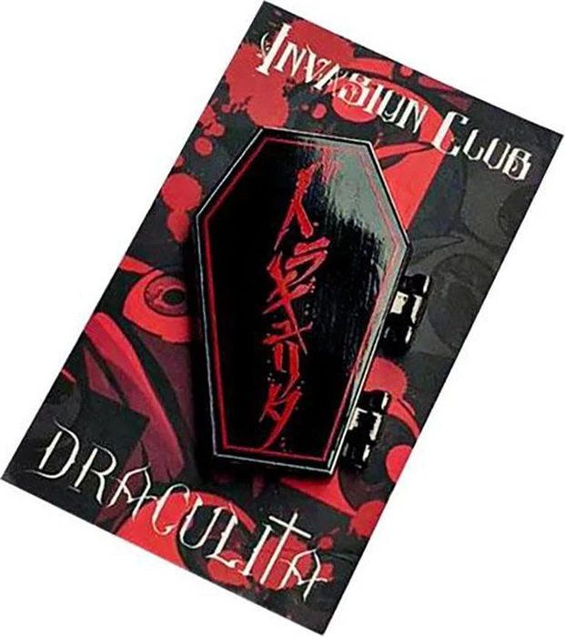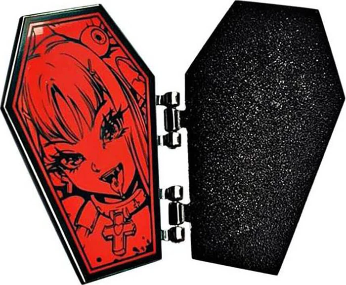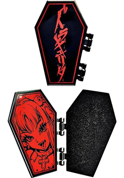 The Coffin Enamel Pin Flips open to reveal Draculita!