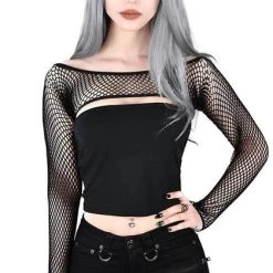 Don’t fear to fall – just get back up or you risk not getting anywhere at all. Hot AF fishnet ‘Bite Me’ boleroΒ in a soft nylon mix with super stretch; wide neckline with long sleeves. Purrfect for your black on black wardrobe.