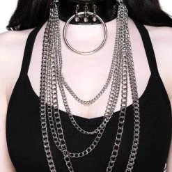 A perfect statement choker, ‘Deeply Destroyed’ combines statement cascading chains with an O-ring detail and fully adjustable back. Brings any outfit to life.