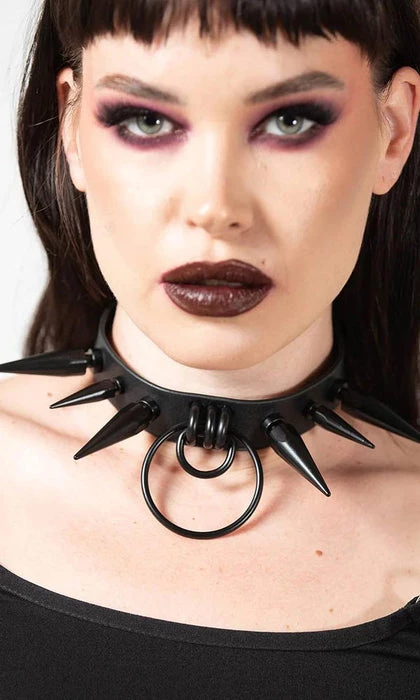 A perfect statement choker,Β βSynchroβ choker. Crafted in high quality vegan leather with a statement O ring and spikes this choker is sure to cause a scene. So simple to style and fully adjustable this will add an edge to any outfit.