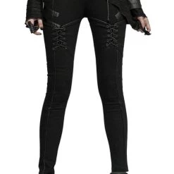 Are you really Alternative if you don’t have at least a few pairs of black skinny jeans?! This stunning pair of stretchy elastic denim features the coolest detailing to level up your outfits! Sporting corset lacing on the front of the thighs, spliced faux leather highlights and the cutest little skull button at the top the the pants! Pair this pair of pants with a sheer top and some chunky sneakers for a sleek badass look!ย