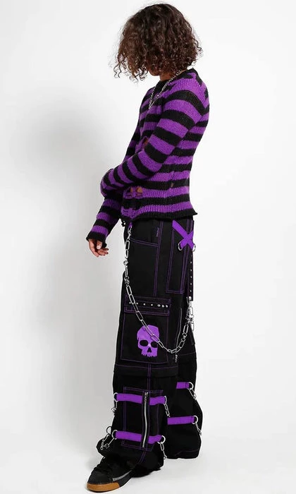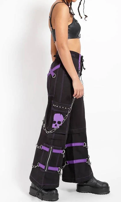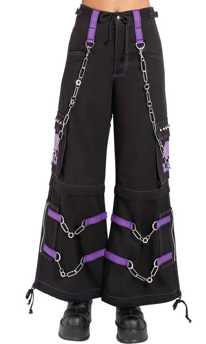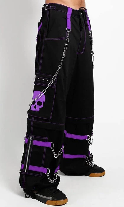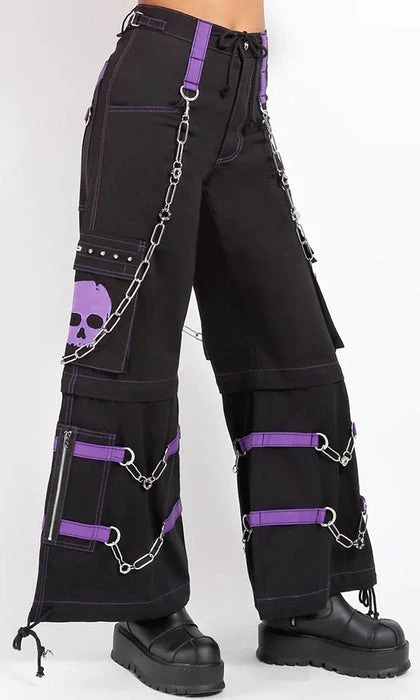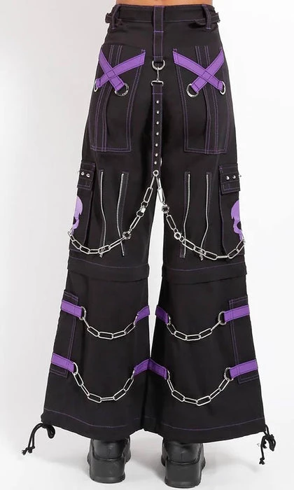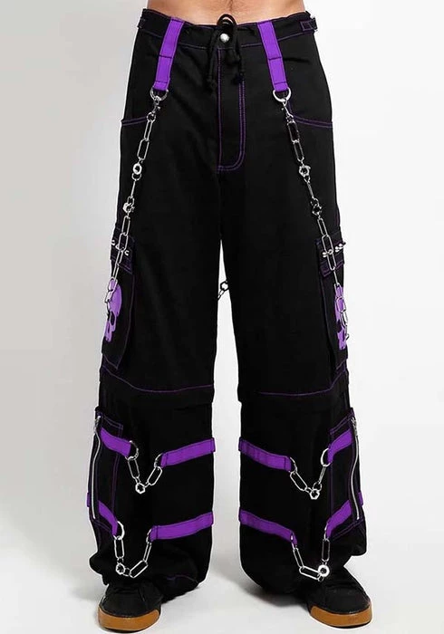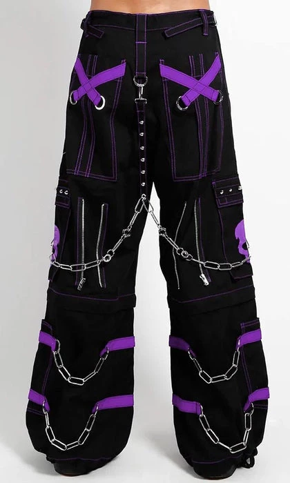 Accept no imitations! From the originator of all things DarkStreet, these pants have an embellished Black and Purple skull on the side. The pants zip off into shorts and feature removable chains, adjustable ankles, D-rings, and deep pockets.